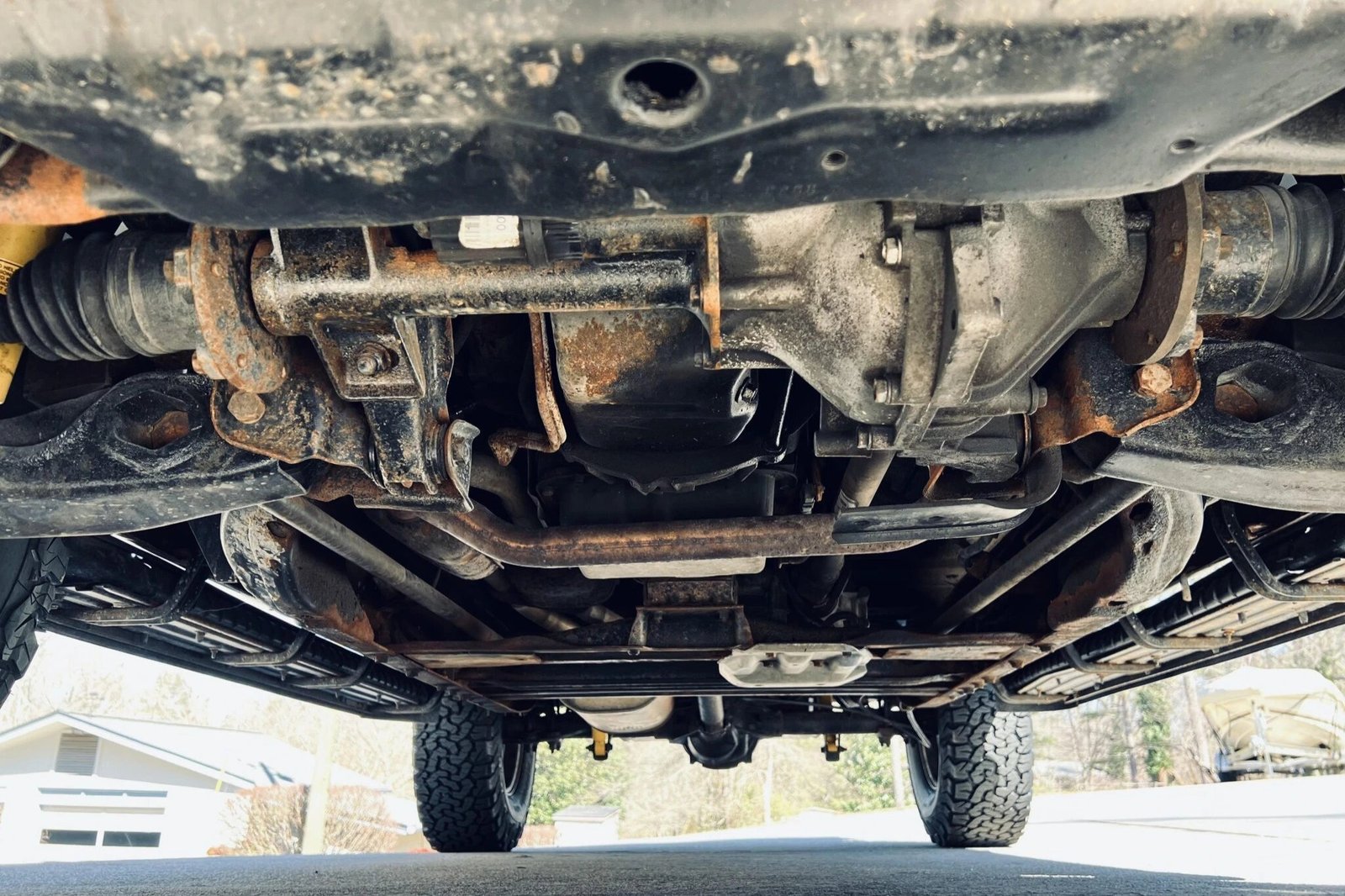 The truck is equipped with power steering, Bilstein shocks, and front disc brakes with ABS. Moog tie rods, upper and lower ball joints, and pitman and idler arms have been fitted.