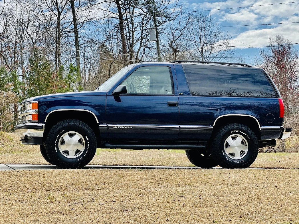 This 1999 Chevrolet Tahoe LT is a two-door example that is finished in Indigo Blue Metallic over beige leather upholstery and is powered by a 5.7-liter L31 V8 paired with a four-speed automatic transmission and a dual-range transfer case.