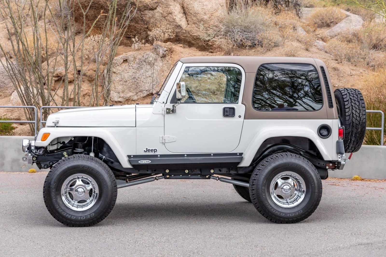 This 1999 Jeep Wrangler Sahara is a modified example that is powered by a turbocharged 4.0-liter inline-six paired with a three-speed automatic transmission and a dual-range transfer case.
