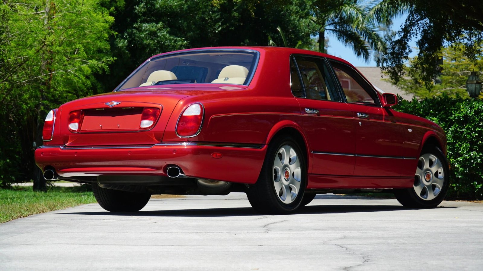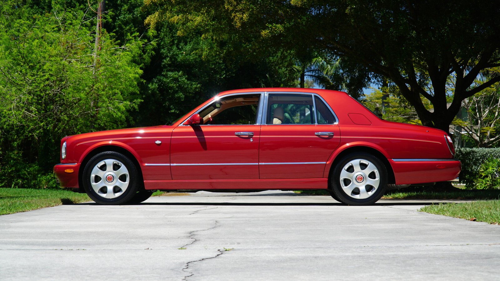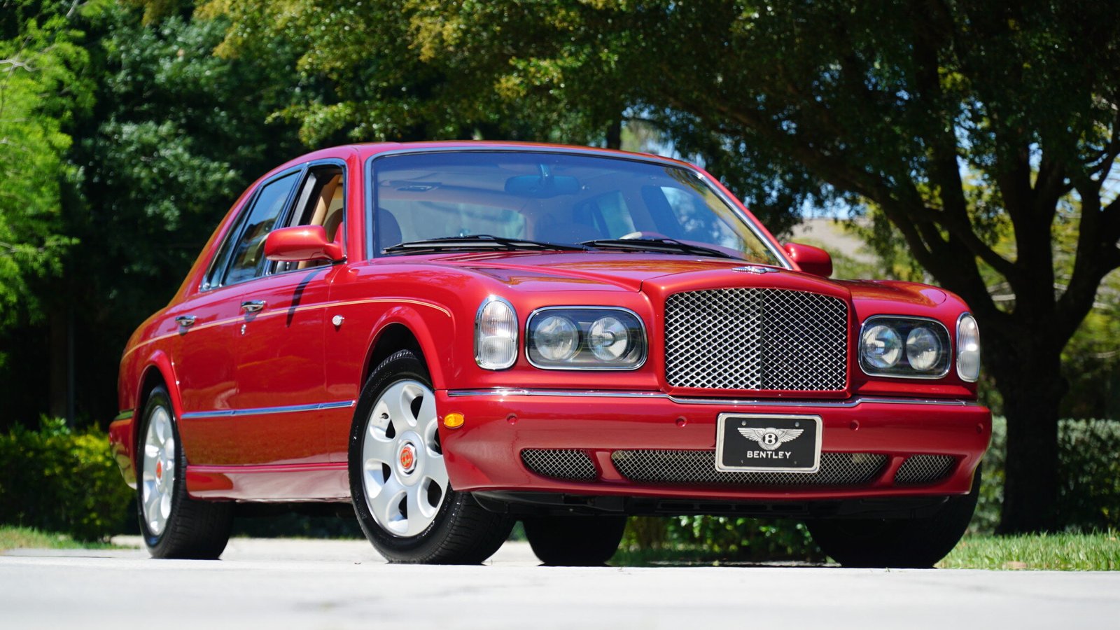 This 2001 Bentley Arnage Red Label is finished in metallic red over tan hides with dark red piping and carpets.