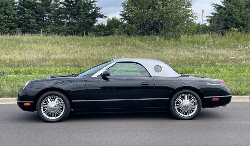 This 2002 Ford Thunderbird is one of 200 examples produced for the Neiman Marcus Christmas catalog, all of which were finished in Evening Black with a Satin Silver Metallic removable hardtop over two-tone black and silver leather. The car is powered by a 3.9-liter V8 paired with a five-speed automatic transmission. Equipment includes a power-operated black soft top, 17″ chrome wheels, integrated fog lights, power-adjustable seats, an in-dash six-CD changer, and dual-zone automatic climate control.