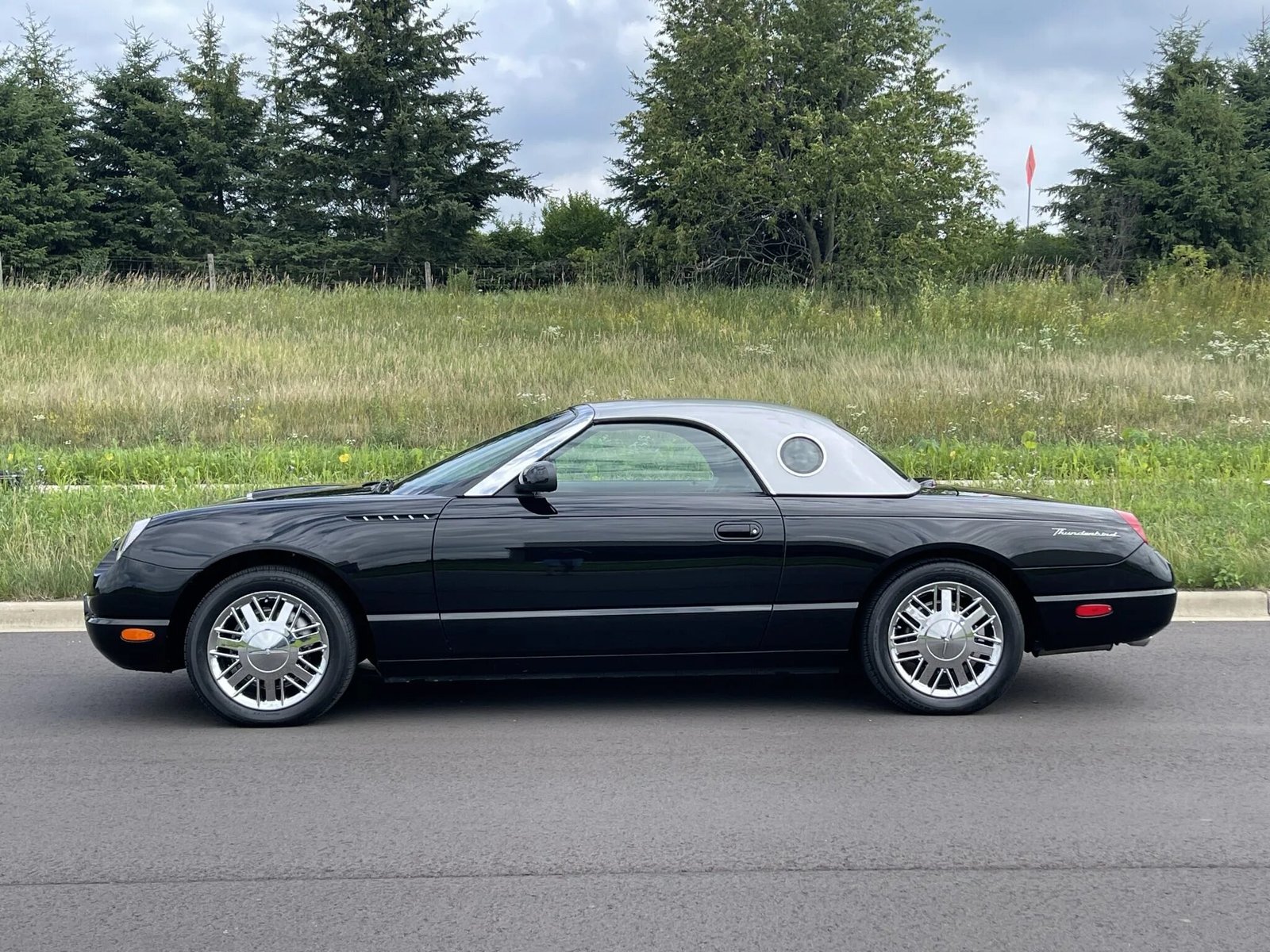 The 17″ chrome wheels feature Thunderbird-branded center caps and are mounted with 235/50 Michelin Pilot MXM4 tires.