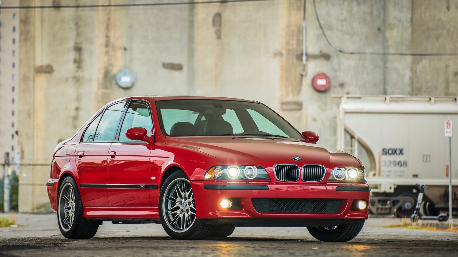 This 2003 BMW M5 is finished in Imola Red over a black Nappa Point Extended Leather interior, and power is provided by a 4.9L S62 V8 paired with a 6-speed manual transmission.