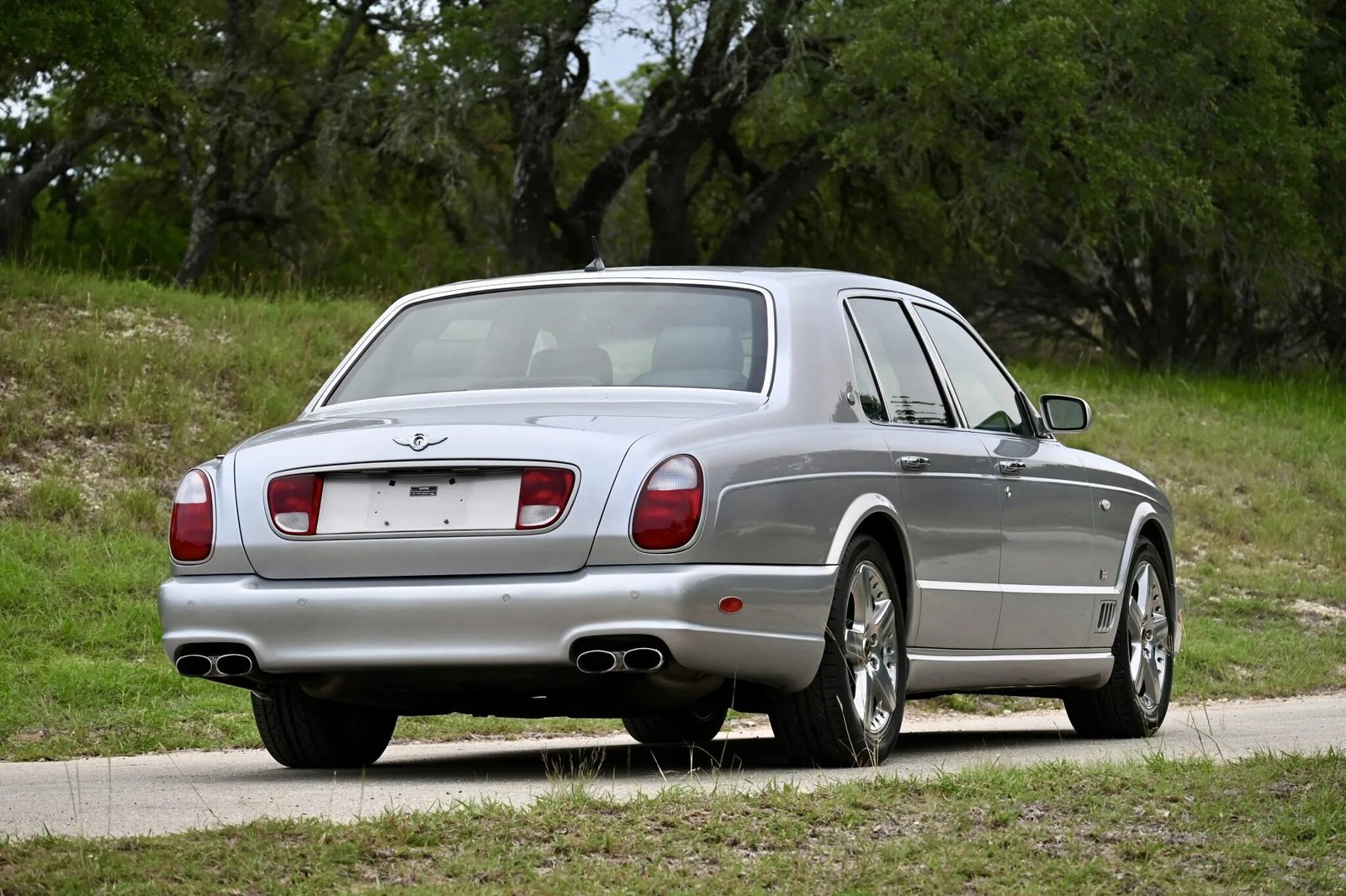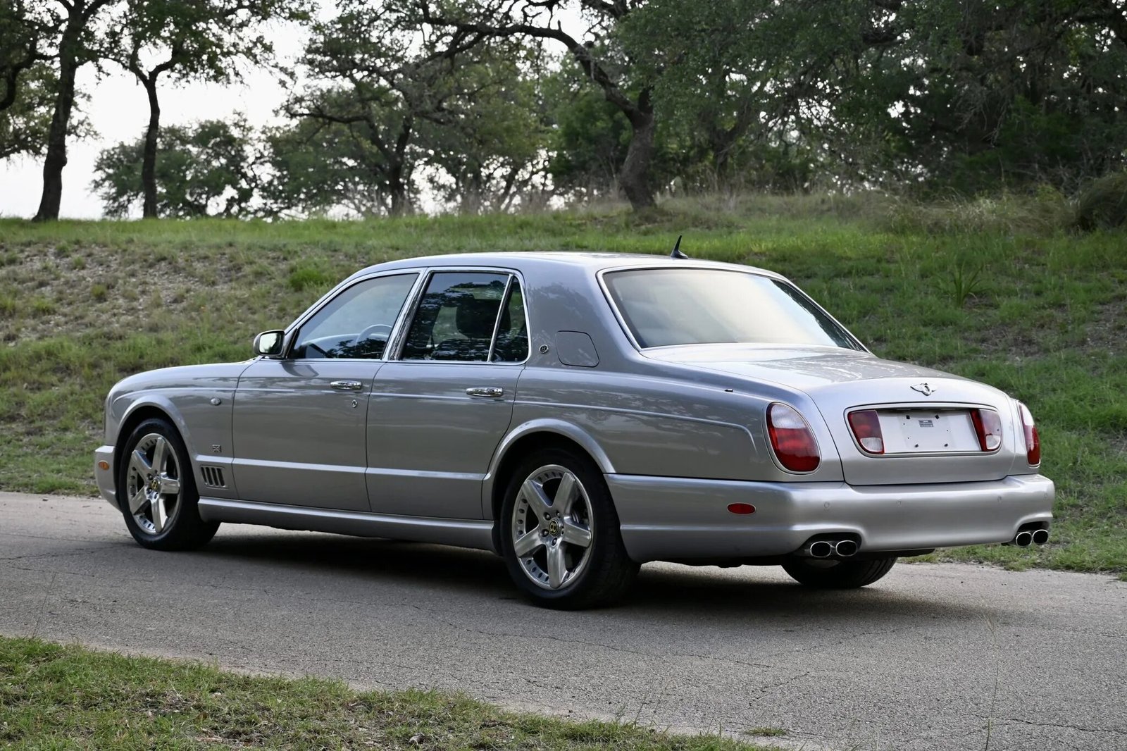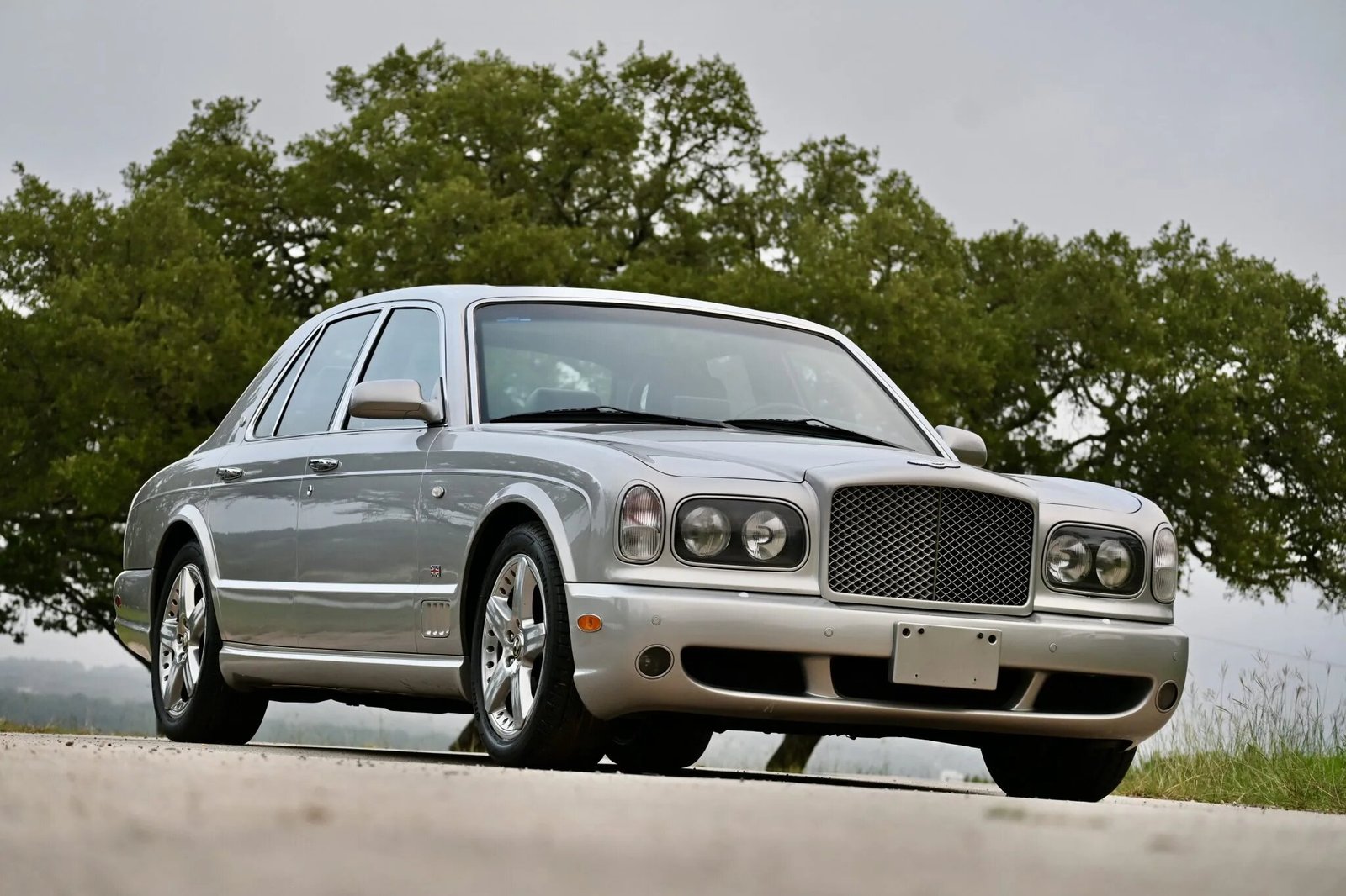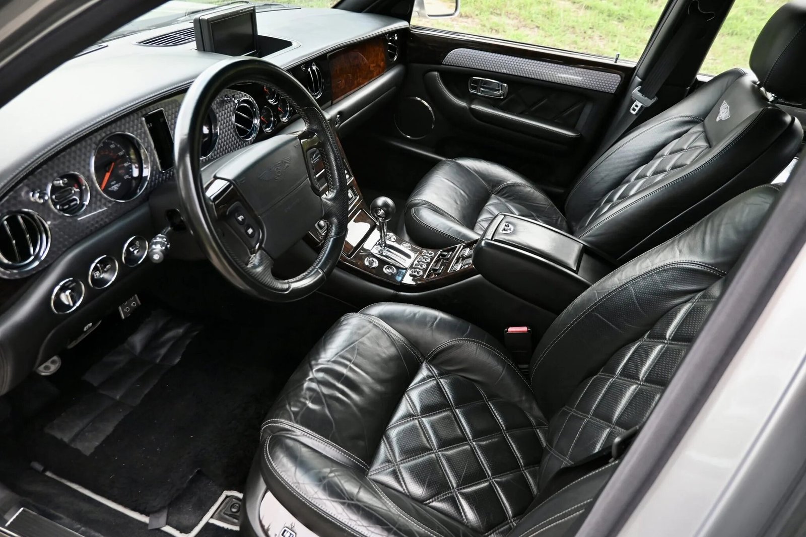 This Bentley Arnage T-24 Mulliner was produced to commemorate Bentley’s win at the 2003 Le Mans 24-hour race, and it is one of just 24 examples offered for sale in the US. The car is powered by a twin-turbocharged 6.75-liter V8 paired with a four-speed automatic transmission and finished in silver over black leather upholstery.Equipment includes a sunroof, parking sensors, two-piece 19″ alloy wheels, heated and power-adjustable seats, rear cabin picnic trays, navigation, and dual-zone automatic climate control. The T-24 Mulliner is visually distinguished by front fender louvers, Union Jack badging, body-color front and rear light bezels, a revised rear bumper cover, and quad exhaust outlets.