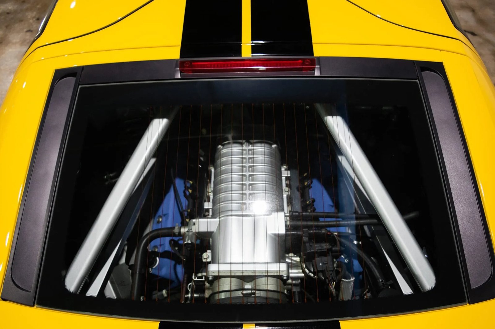 The mid-mounted 5.4-liter DOHC V8 features an aluminum block, cylinder heads, and pistons in addition to a Lysholm screw-type supercharger, a dry-sump lubrication system, and a water-to-air intercooler.