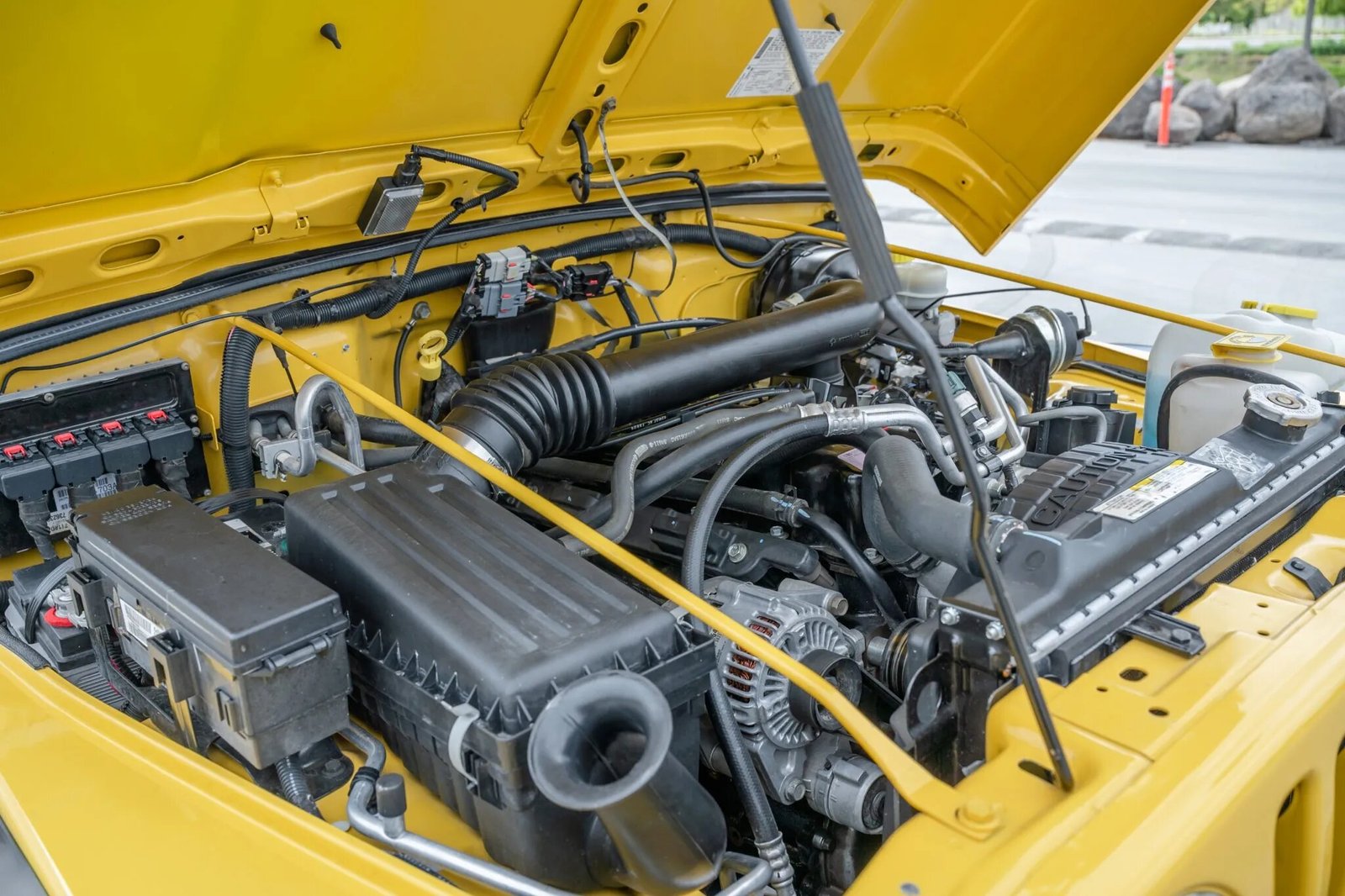 This 2006 Jeep Wrangler Rubicon is finished in yellow over gray cloth upholstery, and power comes from a 4.0-liter inline-six mated to a four-speed automatic transmission and a dual-range transfer case. Equipment includes a black hardtop, 16″ alloy wheels, locking front and rear differentials, Dana 44 axles, air conditioning, and a six-disc CD stereo.