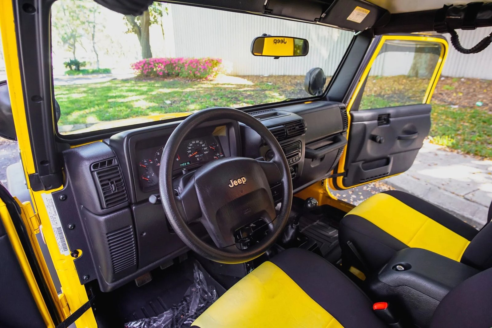 This 2006 Jeep Wrangler Unlimited is finished in yellow over black cloth upholstery and is powered by a 4.0-liter inline-six mated to a six-speed manual transmission and a dual-range transfer case.