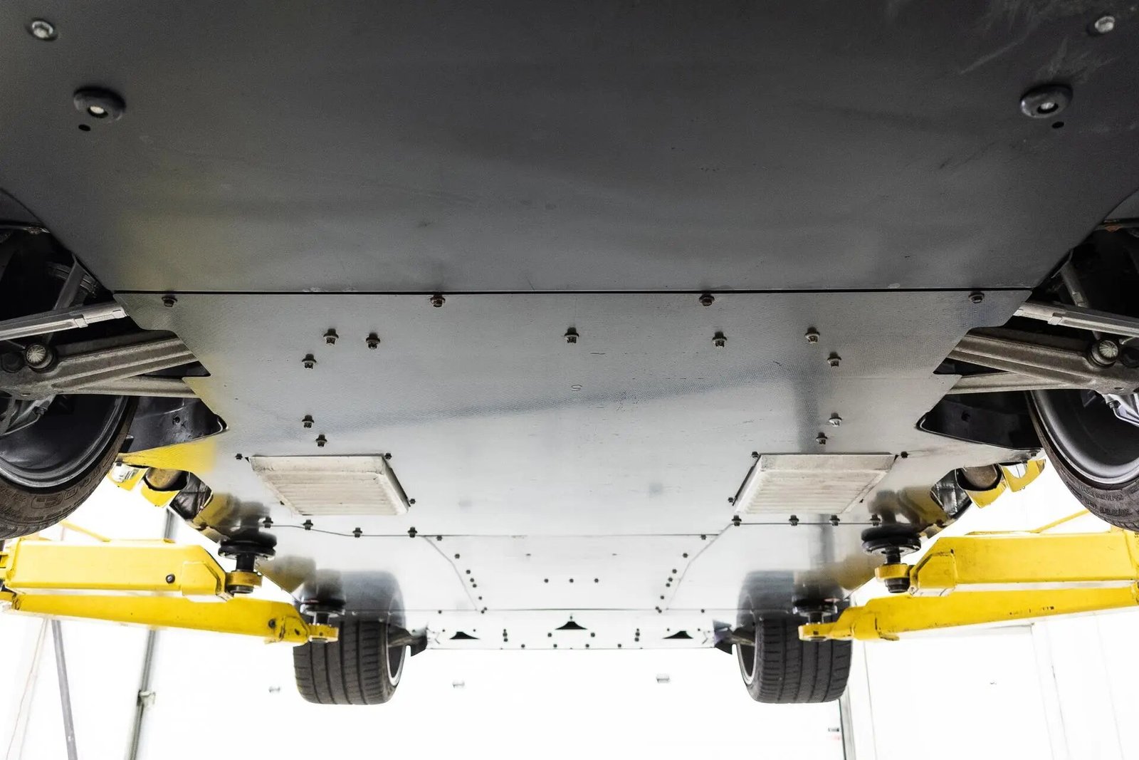 Stopping power is provided by silver Mercedes-Benz-branded calipers over carbon-ceramic rotors at all four corners, and the car is equipped with a Sensotronic Brake Control system (SBC).