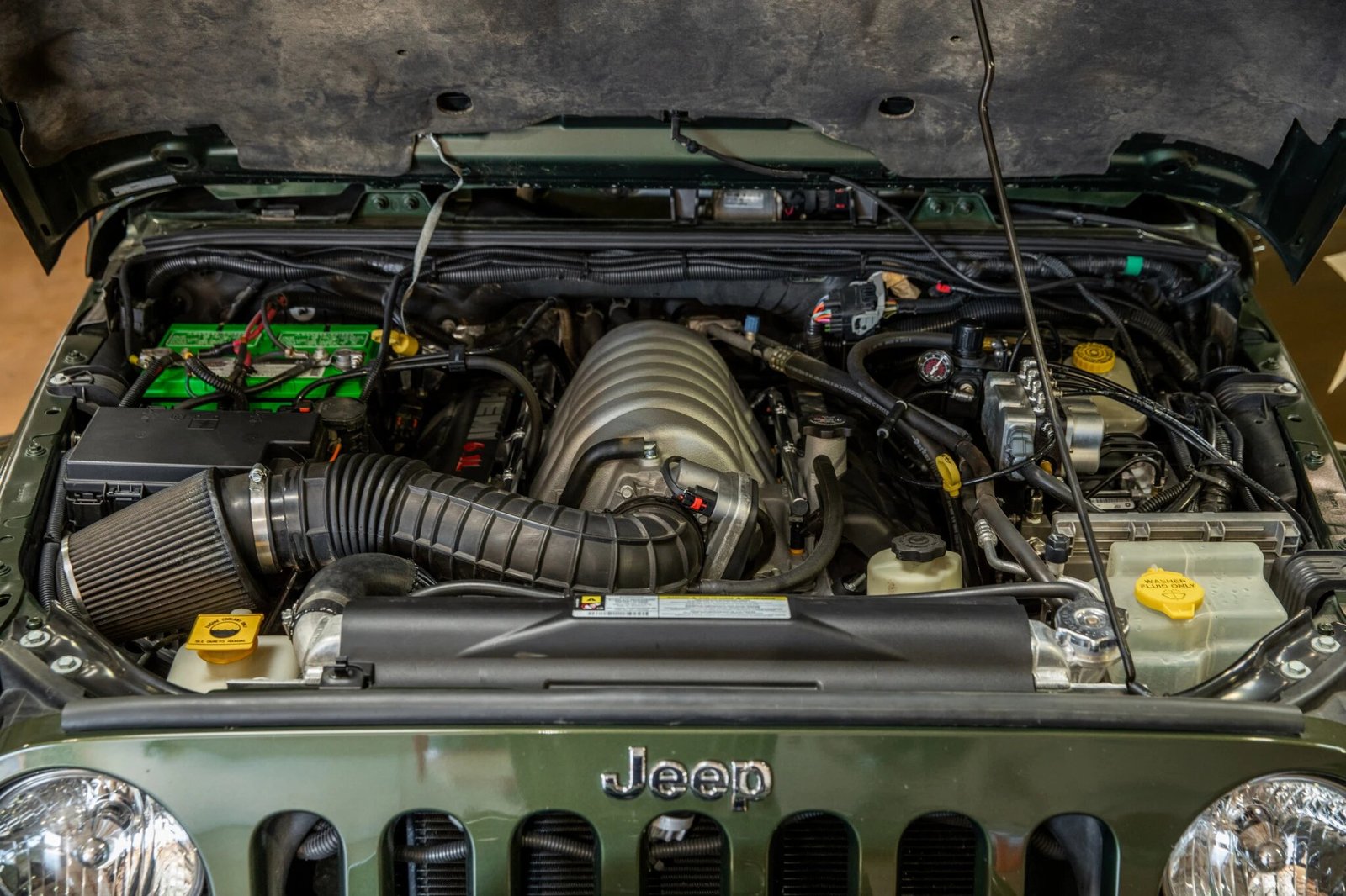 The 6.1-liter Hemi V8 was installed during the build and is mated to a five-speed automatic transmission and a two-speed transfer case.