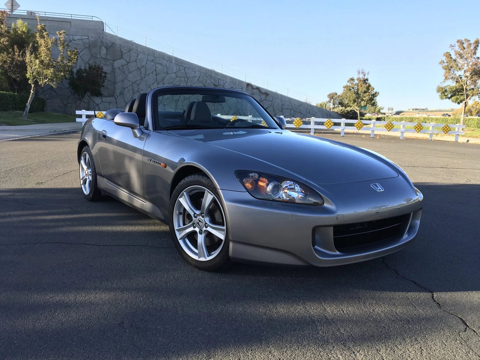 This 2008 Honda S2000 is finished in Chicane Silver Metallic over black leather and is powered by a 2.2-liter VTEC inline-four linked with a six-speed manual transmission. Equipment includes a limited-slip differential, 17″ five-spoke alloy wheels, a black convertible soft top, xenon headlights, a rear spoiler, air conditioning, a CD stereo with auxiliary input, and cruise control.