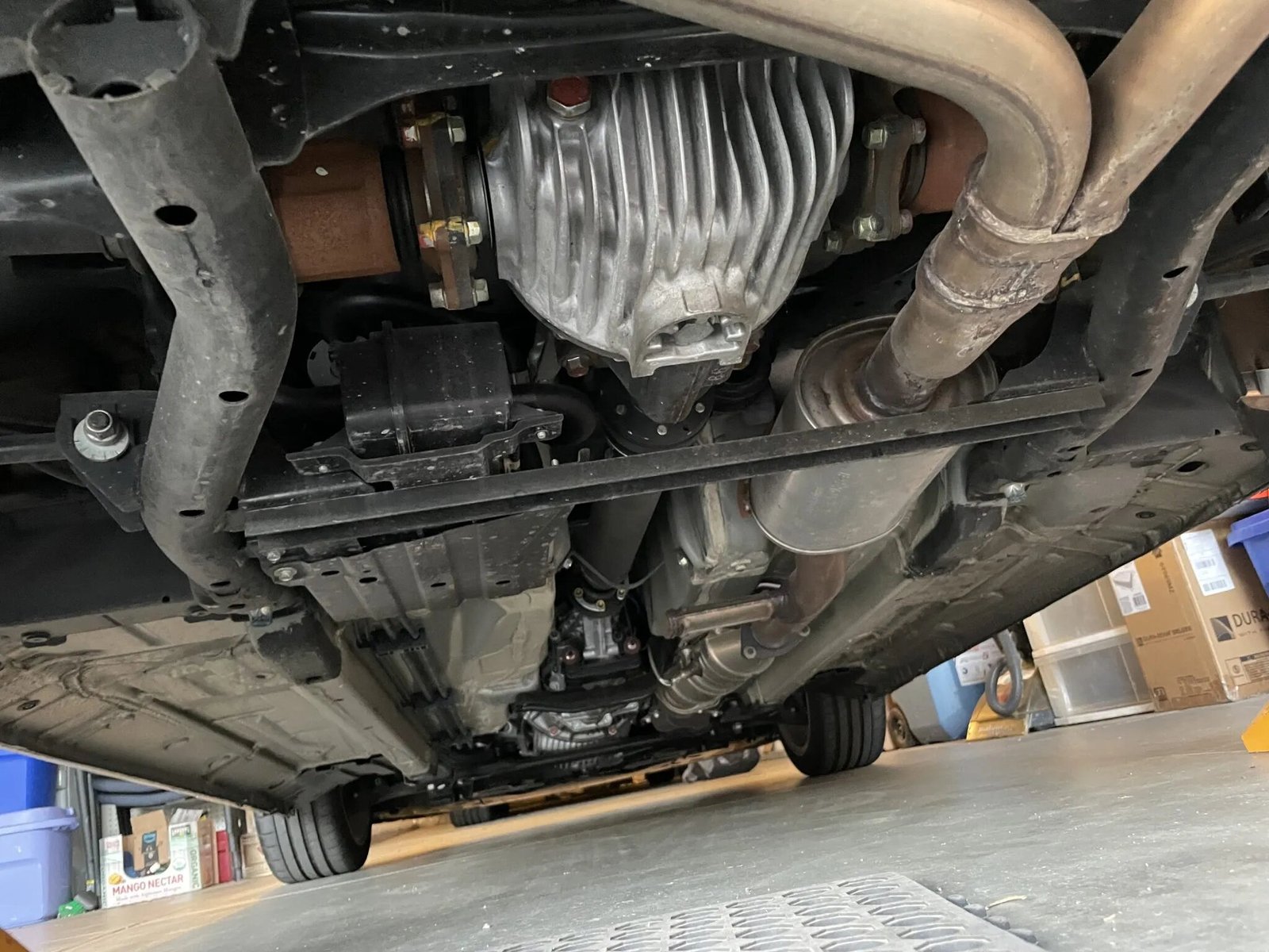 Factory 17″ five-spoke alloy wheels are mounted with 215/45 front and 245/40 rear Michelin Pilot Super Sport tires. The car features double-wishbone suspension and four-wheel disc brakes.