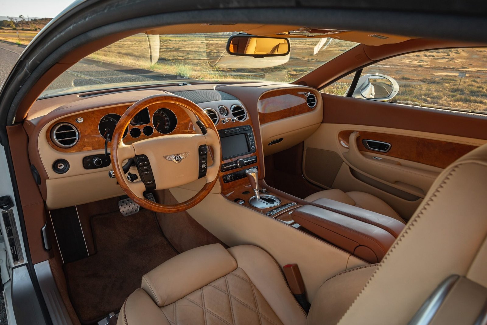 Wood trim adorns the dash, center console, and doors, and amenities include heated and ventilated power-adjustable front seats with memory settings as well as a dash-mounted Breitling analog clock, a rearview camera, a navigation system, a CD stereo, dual-zone automatic climate control, and cruise control.