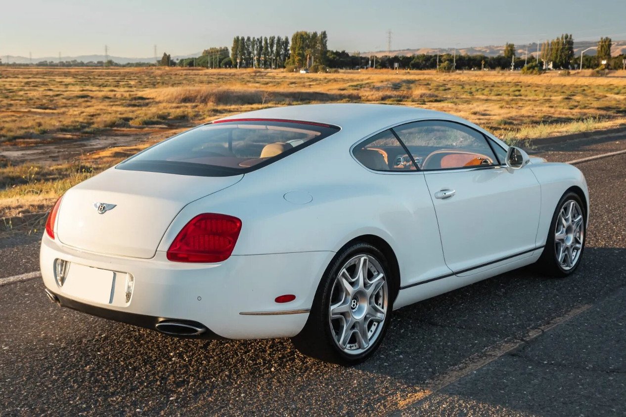 This 2010 Bentley Continental GT Speed was purchased new by the current owner and is powered by a twin-turbocharged 6.0-liter W12 linked with a six-speed automatic transmission, an all-wheel-drive system, and a Torsen center differential. It is finished in Glacier White over Magnolia leather and features 20″ multi-piece alloy wheels, an adaptive air suspension, xenon headlights, parking sensors, a backup camera, heated and ventilated power-adjustable front seats, navigation, dual-zone automatic climate control, and cruise control.