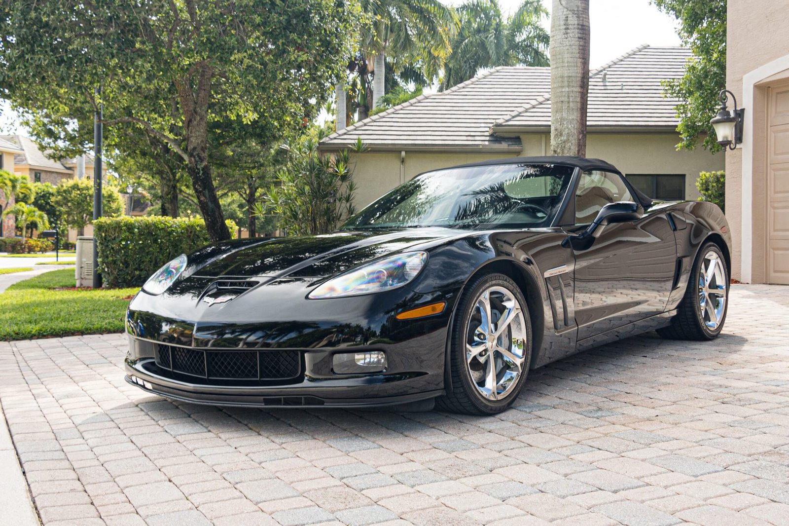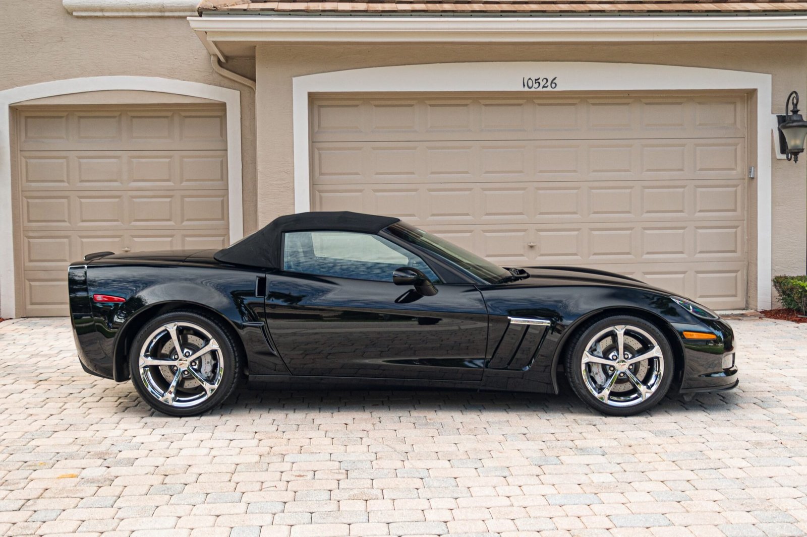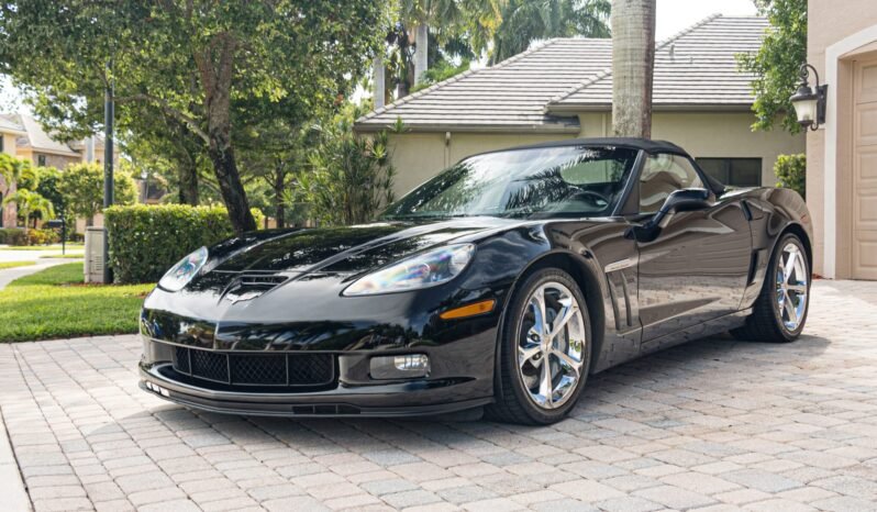 This 2010 Chevrolet Corvette Grand Sport convertible is finished in black over two-tone leather upholstery. Power is from a 6.2-liter LS3 V8 mated to a six-speed automatic transaxle and a limited-slip differential. Equipment includes a black soft top, 18″ & 19″ chrome-finished wheels, a dual-mode exhaust system, xenon headlights, navigation, and the 3LT Preferred Equipment Group, which added heated and power-adjustable sports seats, a Bose seven-speaker sound system, and a head-up display.