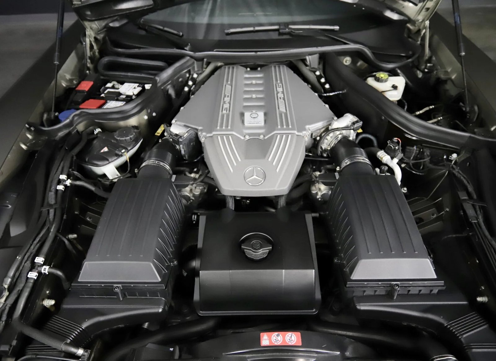 The hand-assembled 6.2-liter M159 DOHC V8 was factory rated at 563 horsepower and 479 lb-ft of torque, and a plaque denotes the engine builder’s name.