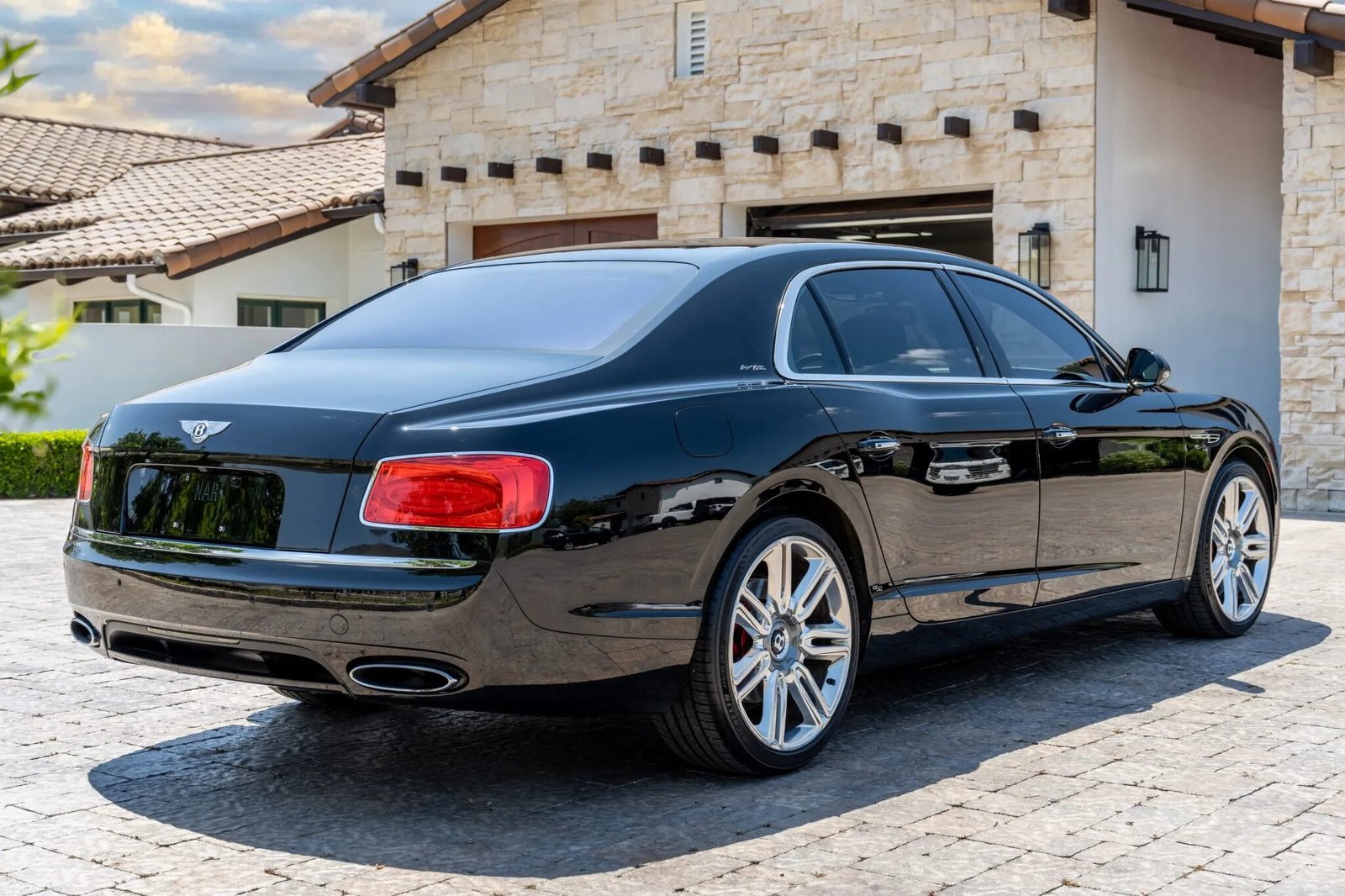 This 2016 Bentley Flying Spur W12 it is powered by a twin-turbocharged 6.0-liter W12 driving all four wheels through an eight-speed automatic transaxle and is finished in Beluga over Beluga leather upholstery. Features include the Mulliner Driving Specification Package along with polished 21″ alloy wheels, self-leveling air suspension, a glass sunroof, bi-xenon headlights, parking sensors, four-zone automatic climate control, power-operated rear window sunshades, heated and ventilated power-adjustable seats, and a touchscreen infotainment system with navigation.