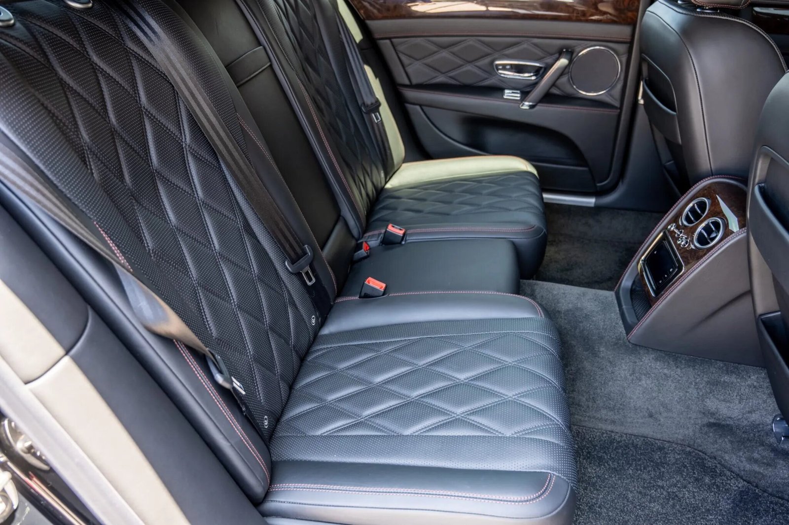 Mulliner-specification polished 21″ alloy wheels are wrapped in 275/35 Michelin Pilot Sport All Season 4 tires. The car rides on a self-leveling air suspension with continuous damping control, and stopping power is provided by disc brakes at all four corners.