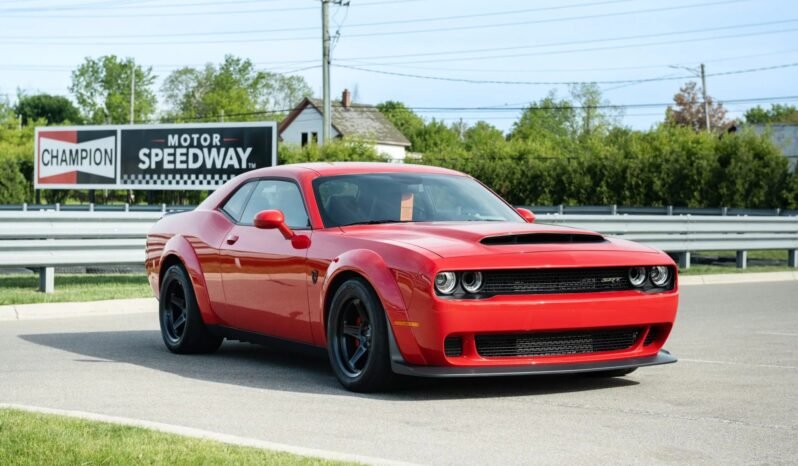 This 2018 Dodge Challenger SRT Demon is one of 3,300 examples built for the model year.Powered by a supercharged 6.2-liter Hemi V8 mated to an eight-speed automatic transmission and a limited-slip differential, the car is finished in TorRed over black Laguna leather and Alcantara upholstery. Additional equipment includes 18″ aluminum wheels, Brembo brake calipers, Widebody fender flares, and an Air Grabber hood as well as the Comfort Audio Group, dual-zone automatic climate control, and optional front and rear passenger seats.