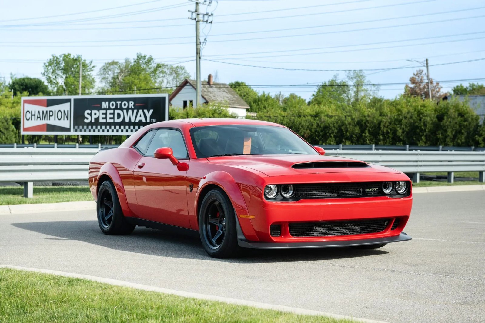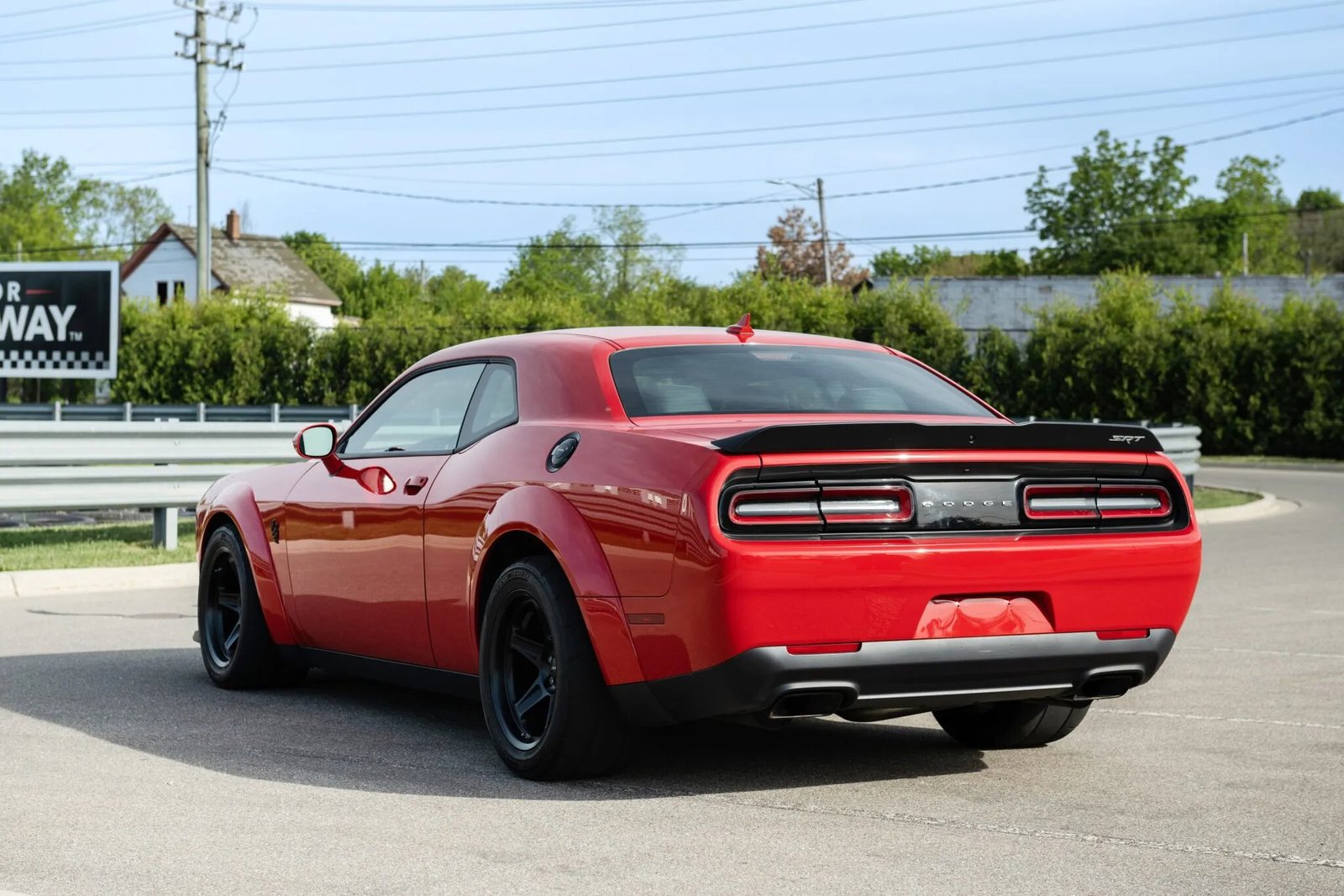 Aluminum 18″ wheels are finished in black and are wrapped in Demon-branded 315/40 Nitto NT05R drag radial tires.