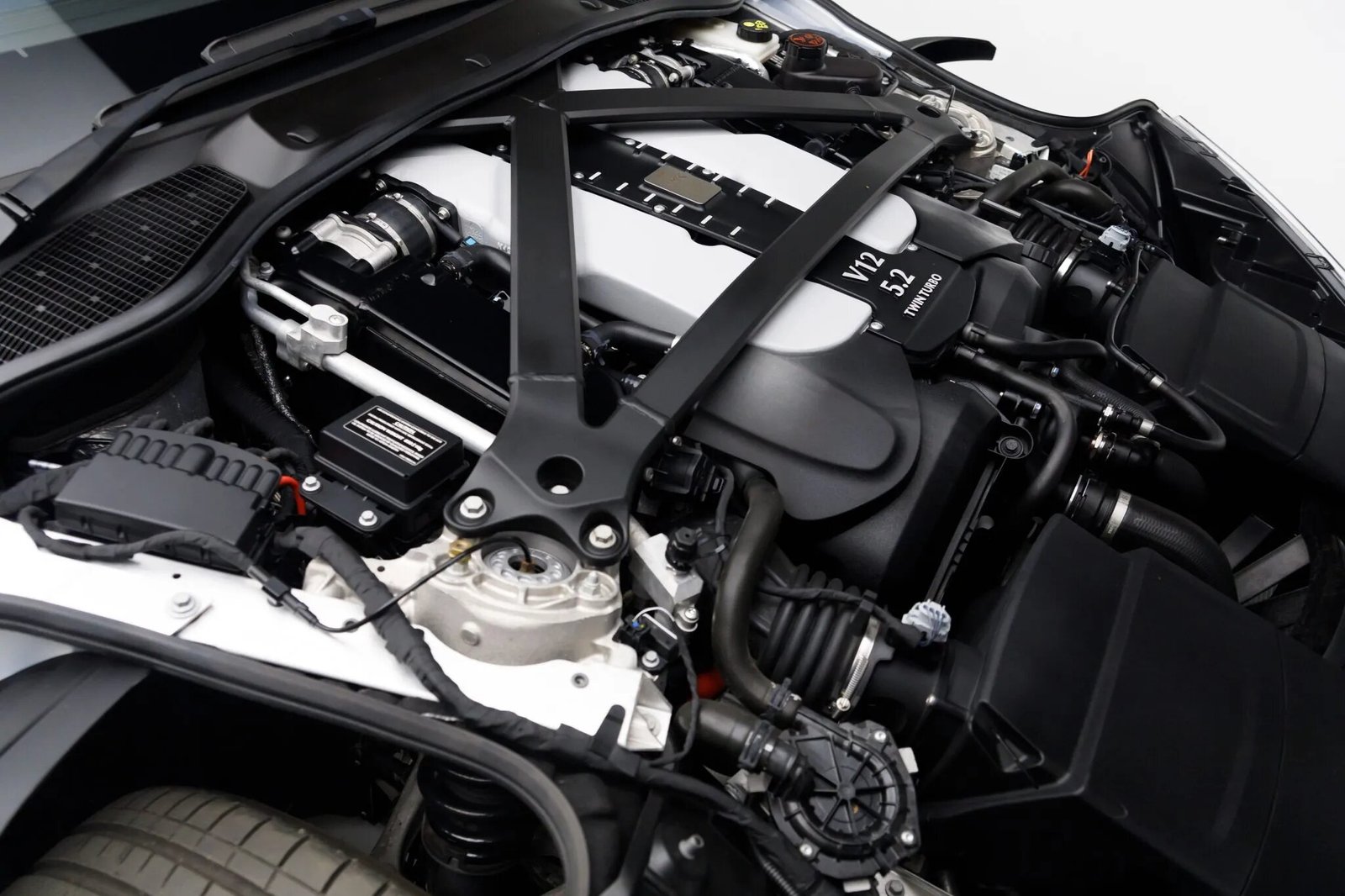 The twin-turbocharged 5.2-liter V12 was factory rated at 630 horsepower and 516 lb-ft of torque. Power is sent to the rear wheels through a carbon-fiber driveshaft within an aluminum torque tube as well as a rear-mounted eight-speed automatic transaxle with a limited-slip differential. Manufacturer’s literature, two keys, and carpeted floor mats are included in the sale. The Carfax report shows no accidents or other damage.