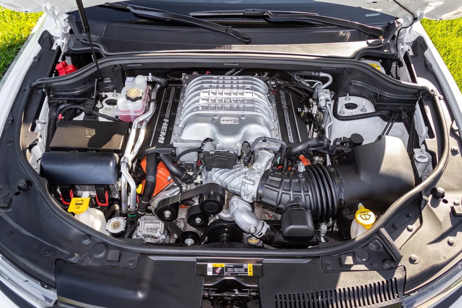 The supercharged 6.2-liter Hemi SRT V8 was factory rated at 710 horsepower and 645 lb-ft of torque. Additional equipment includes launch control, performance-tuned steering, and a high-performance exhaust system. An oil change was performed in preparation for the sale.