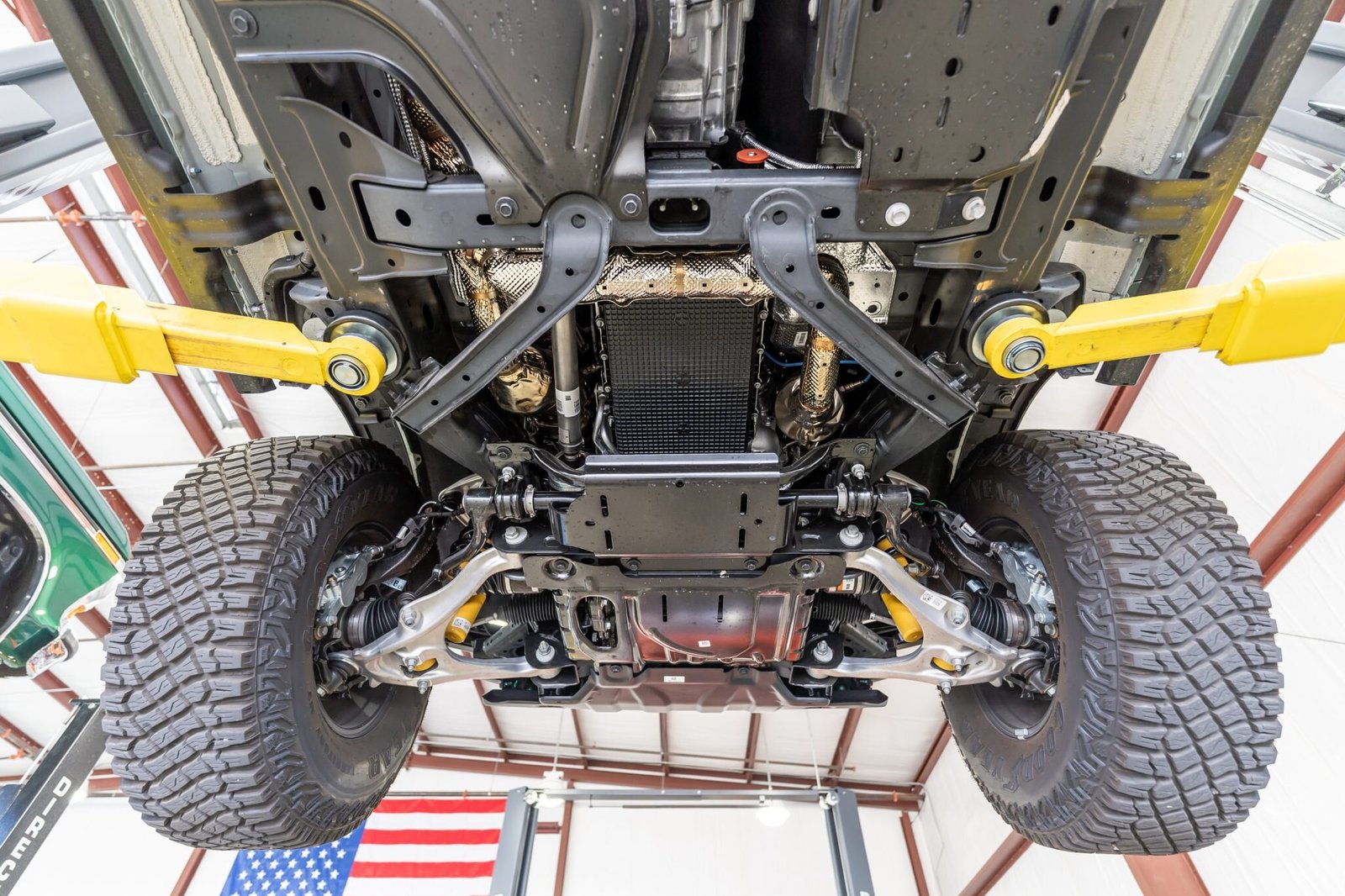 The truck is equipped with an electronically-controlled front sway bar and a Terrain Management System with six selectable “Goes Over Any Type of Terrain” (G.O.A.T.) drive modes.