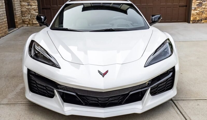 This 2023 Chevrolet Corvette Z06 is a 70th Anniversary Edition coupe that is finished in White Pearl Metallic over Ceramic White leather upholstery and is powered by a 5.5-liter LT6 V8 paired with an eight-speed dual-clutch automatic transaxle. Equipment includes an electronic limited-slip differential, the 3LZ Equipment Group, a removable carbon-fiber roof panel, LED headlights, 20″ and 21″ forged aluminum wheels, Magnetic Selective Ride Control, and Brembo brakes as well as heated and ventilated power-adjustable GT2 bucket seats, carbon-fiber trim, a Bose sound system, dual-zone automatic climate control, front and rear cameras, rear parking sensors, and a touchscreen infotainment system.