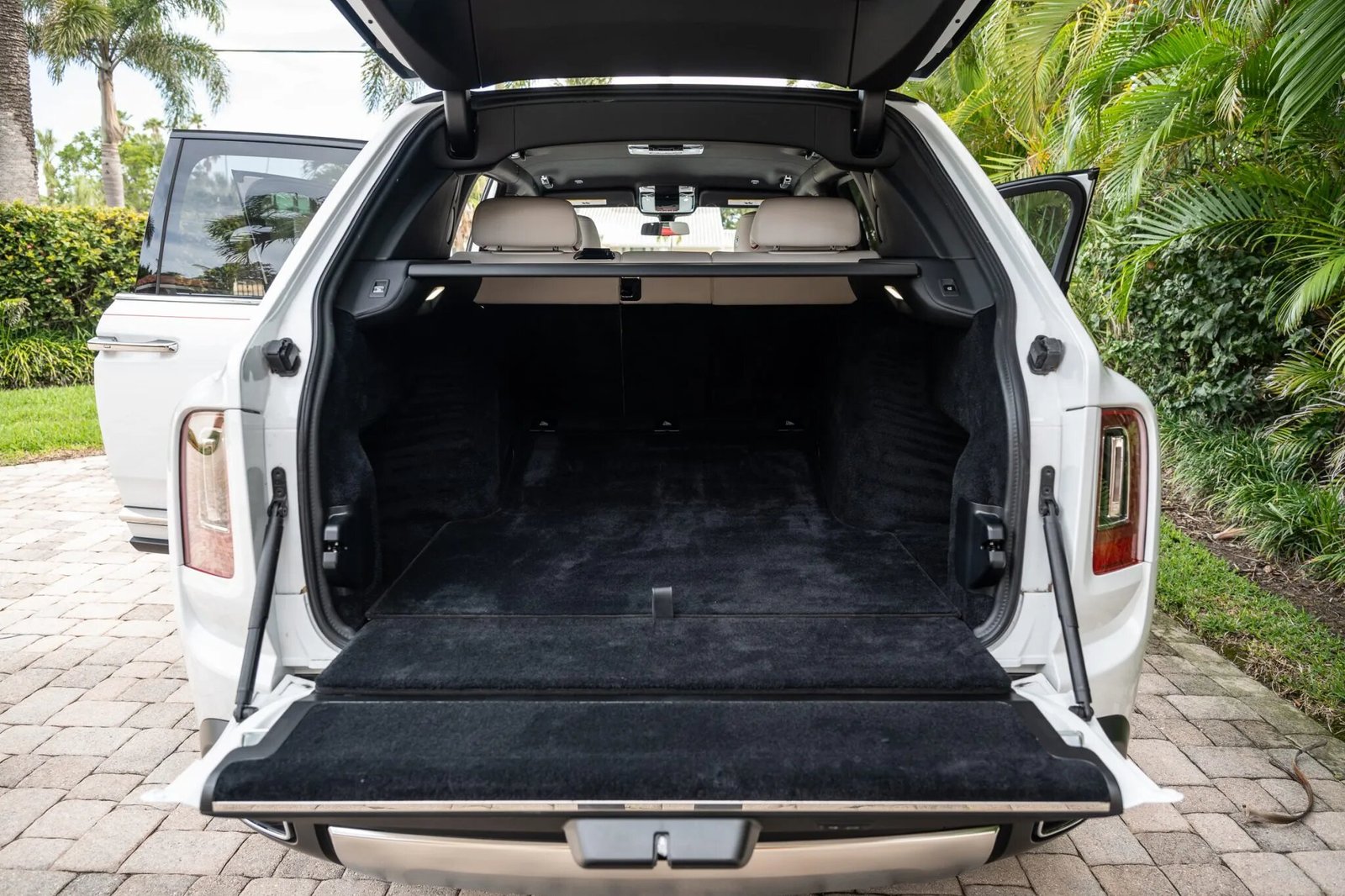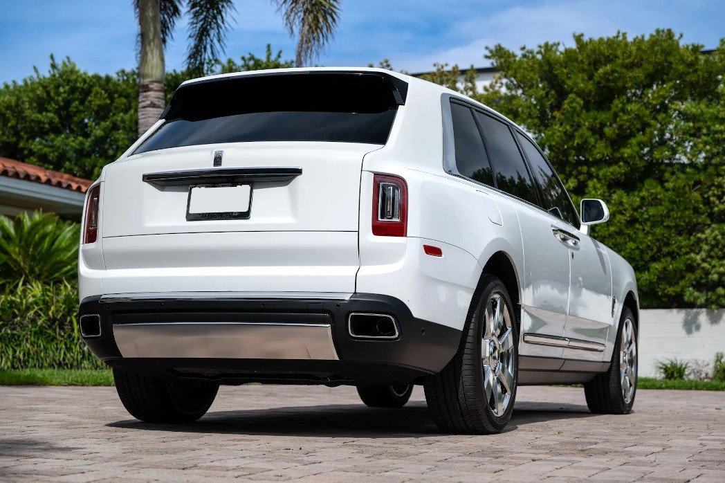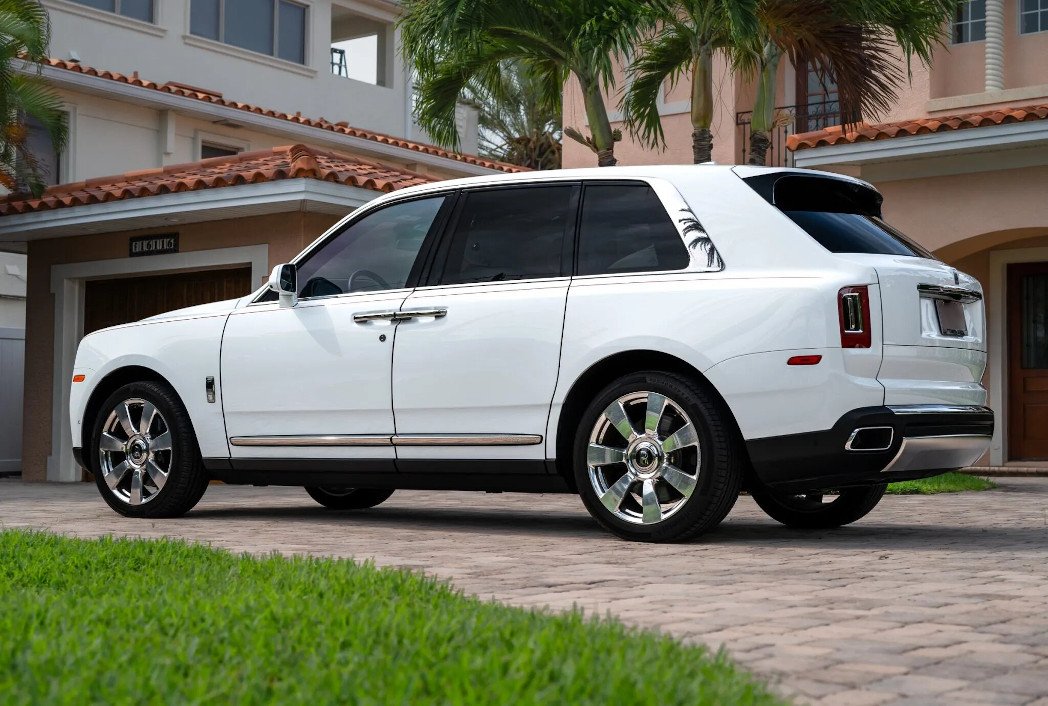 The Cullinan debuted in 2019 in the US market the first production sport utility vehicle from Rolls-Royce. This example is finished in Arctic White and features a chrome grille with a retractable Spirit of Ecstasy ornament, Rolls-Royce Laser headlights with high-beam assist, rear-hinged rear doors with power close assistance, and front and rear parking sensors.